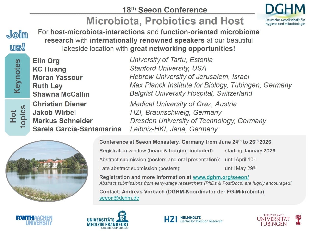 We look forward to discussing host-microbiota-interactions and clinically-oriented microbiome research with you and our internationally renowned speakers at our beautiful lakeside location with great food and a relaxing atmosphere!
