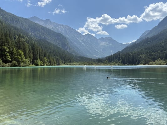 Von unserem Quartier in Flachau folgen der Strecke nach Wagrain und dann durch das Großarltal zum idyllischen Jägersee. Nach der moderaten Fahrt genießen wir eine Brotzzeit im Gasthaus Jägersee am Wasser mit Blick auf die Radstädter Tauern. Dieser idealer Startpunkt bietet uns die Möglichkeit für kurze und längere Spaziertouren in der malerischen Bergwelt. Erholt rollen wir uns zurück nach Wagrain und fahren dann bergan zurück nach Flachau.