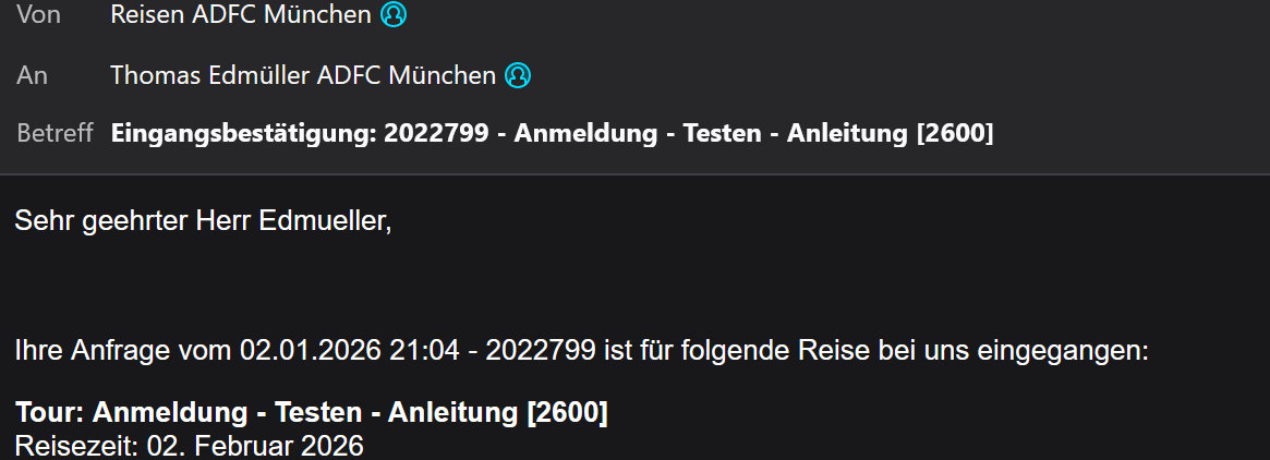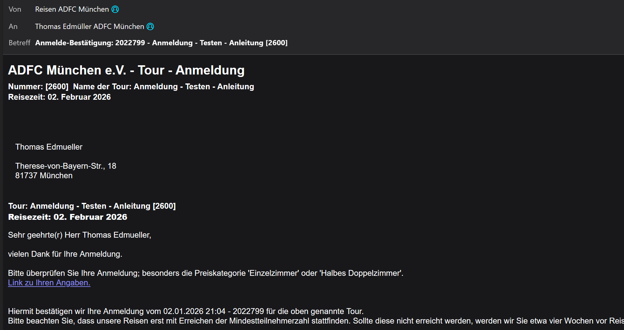 Dies ist ist eine Test-Tour, einige von Euch wollten 'entspannt' den Anmeldevorgang testen.