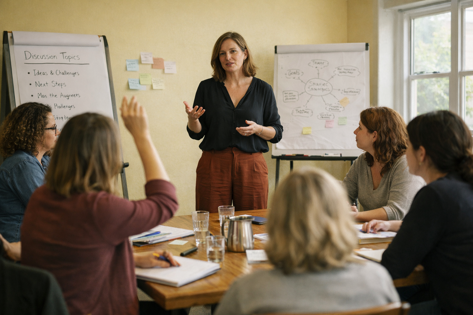 | Vielleicht kennst Du diese Situation: Ein Gespräch in einer Gruppe läuft, einige sprechen viel, andere kaum. Das Thema driftet ab, die Zeit läuft – und Du spürst, dass ein kurzer Eingriff der Gruppe guttun würde. Gleichzeitig tauchen Gedanken auf wie: Darf ich jetzt unterbrechen? Ist das meine Rolle? Genau hier beginnt Facilitation: in der Fähigkeit, Gespräche zu strukturieren, Räume zu halten und Prozesse bewusst zu begleiten. Viele Frauen moderieren Gespräche, begleiten Gruppen oder übernehmen Verantwortung für Prozesse – in Workshops, Teams, Projekten oder Communities. SIe fragen sich: Wie kann ich einen Raum so führen, dass Gespräche lebendig bleiben, unterschiedliche Stimmen Platz haben und die Gruppe gemeinsam wirklich weiterkommt? Dieses Seminar lädt dich ein, genau das zu erforschen: deine eigene Art zu moderieren und Gruppen durch Gespräche, Austausch und Entscheidungsprozesse zu begleiten. Facilitation bedeutet dabei mehr als nur „das Wort zu erteilen“. Es geht um ein feines Gespür für Dynamiken im Raum – für das Wechselspiel von Leading und Pacing von Struktur geben und dem Prozess folgen. Gute Facilitation verbindet persönliche Präsenz mit klaren Methoden. Dabei muss Moderation nicht immer eine formelle Rolle sein. Oft entstehen Situationen, in denen wir spüren, dass ein Gespräch Struktur oder ein kurzer Impuls guttun würde – auch wenn wir offiziell gar nicht als Moderatorin eingesetzt sind. Teil dieses Seminars ist es deshalb auch, Frauen darin zu stärken,solche Facilitation-Momente wahrzunehmen und verantwortungsvoll zu nutzen – im Dienst der Gruppe. |
