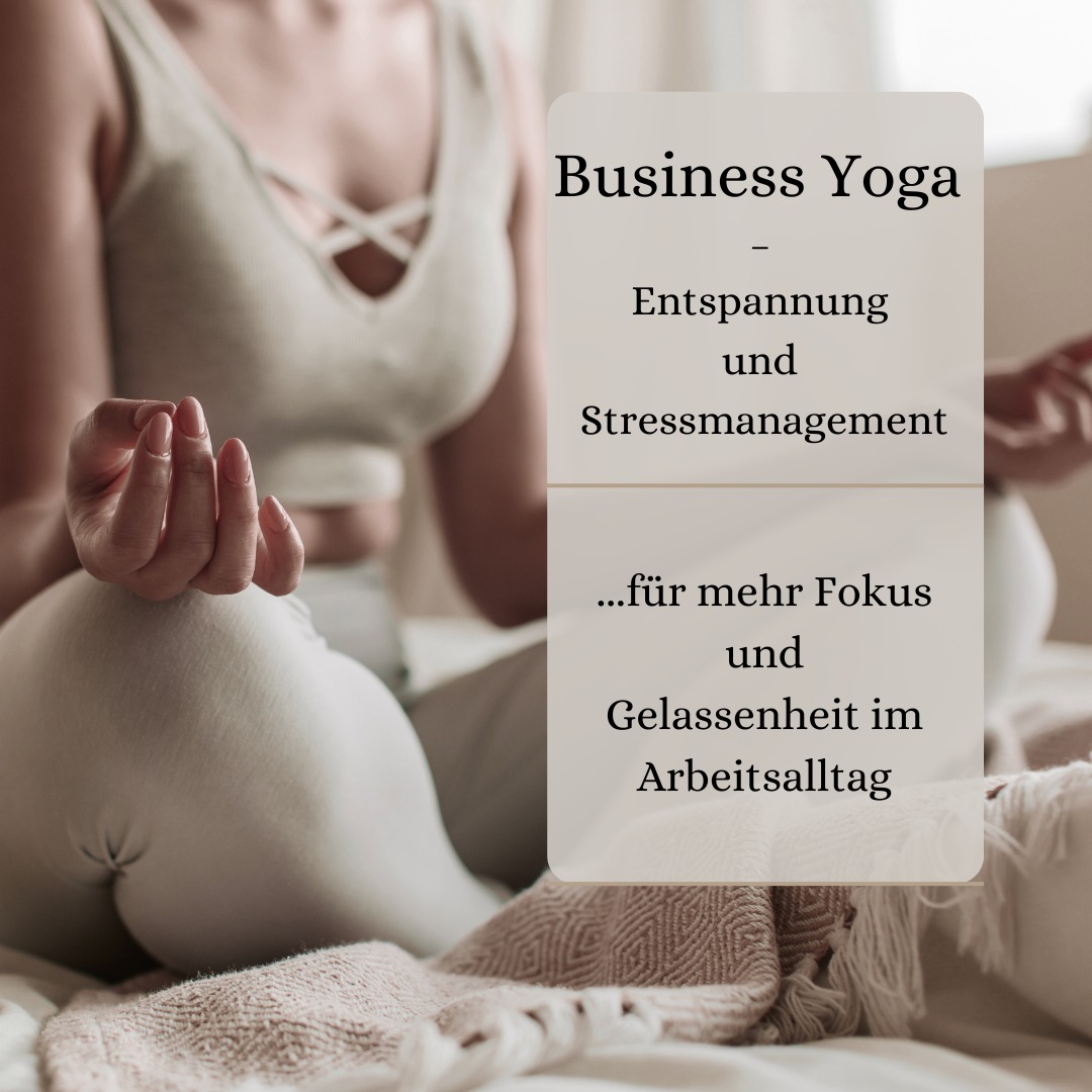 Business Yoga ist ein speziell entwickeltes Angebot, das Berufstätigen hilft, die Herausforderungen des modernen Arbeitsalltags besser zu bewältigen. Der Kurs kombiniert sanfte Yogaübungen, Atemtechniken und Achtsamkeitspraxis, um akute Stressreaktionen zu dämpfen, die Konzentration zu fördern und die körperliche sowie mentale Balance wiederherzustellen bzw. aufrechtzuerhalten. Durch die regelmäßige Praxis wird die Resilienz gegenüber Stress gestärkt, Verspannungen gelöst und das Wohlbefinden nachhaltig verbessert – eine wertvolle Investition in die eigene Gesundheit und Leistungsfähigkeit.