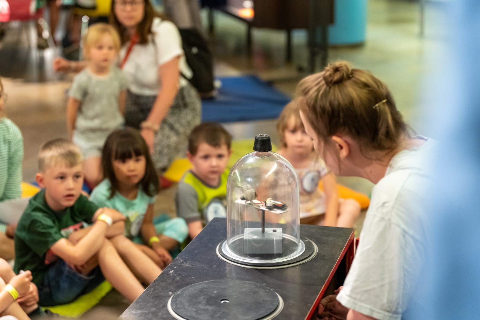 Wie verhalten sich verschiedene Dinge im Vakuum? Könnte ein Flugzeug fliegen, wenn es nicht von Luft umgeben ist? Und könnten wir überhaupt etwas hören? Diesen Fragen gehen wir auf den Grund. Vor und nach der Vorführung könnt ihr an vielen Experimentierstationen selber forschen.