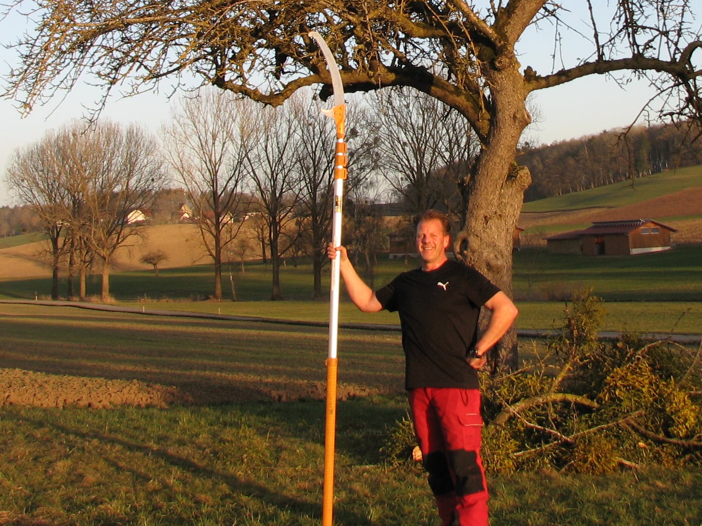 Nicht nur in der Theorie, sondern auch in der Praxis lernen dann nachmittags die Obstbaumschnitt-Studierenden die richtigen Techniken für den Schnitt an Jung- und Altbäumen, an Obstbaumhochstämmen, sowie an Obstbaum-Neupflanzungen kennen. Zusätzlich vermittelt das Seminar Hintergrundwissen zur "Kunst des Baumschneidens". Am Beispiel der Obstbaumpflanzungen im Museumsdorf Kürnbach wird verdeutlicht, welche Bedeutung der Streuobstbau für den Erhalt des Landschaftsbilds und den Schutz der Umwelt einnimmt.