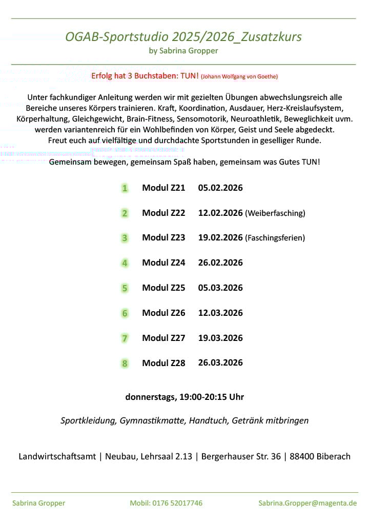 | Training | OGAB-Sportstudio ZUSATZKURS |