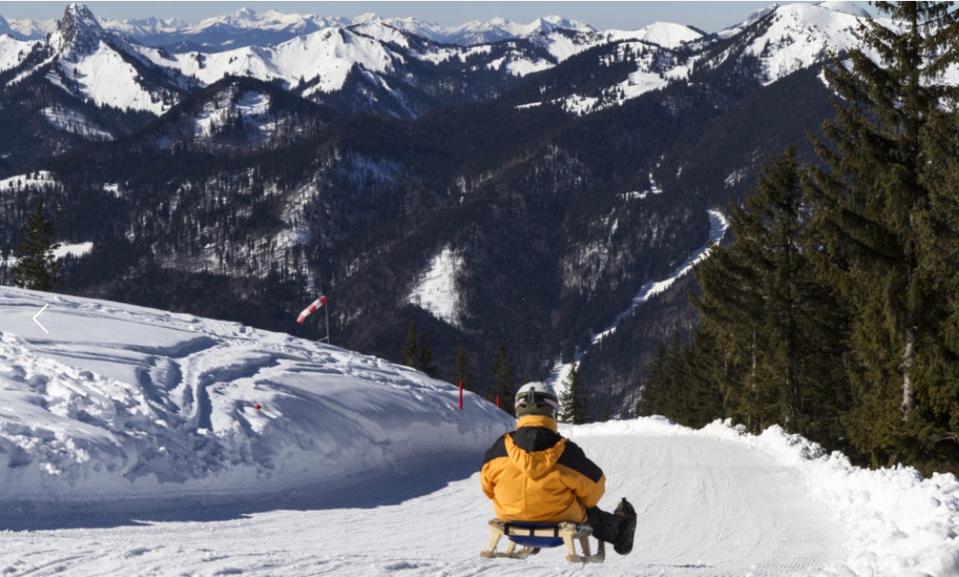 Abfahrt: Rodelspaß auf dem gleichen Weg zurück zum Parkplatz (ca. 20–30 Minuten)