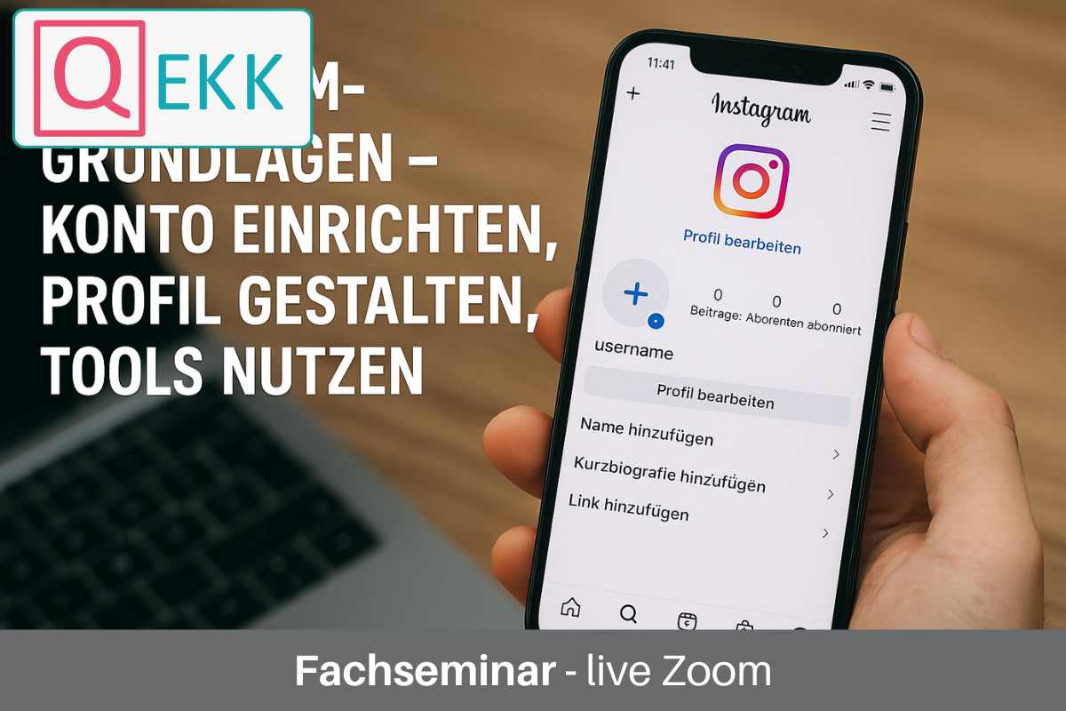 In diesem Fachseminar werden Schritt für Schritt die Grundlagen von Instagram vermittelt und praxisnah gezeigt, wie ein eigenes Konto angelegt, ein Profil erstellt und professionell gestaltet wird.