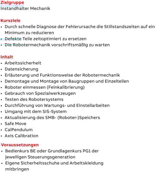 | Kurs | IRC5-ME-4400 Mechanik IRB-4400 |