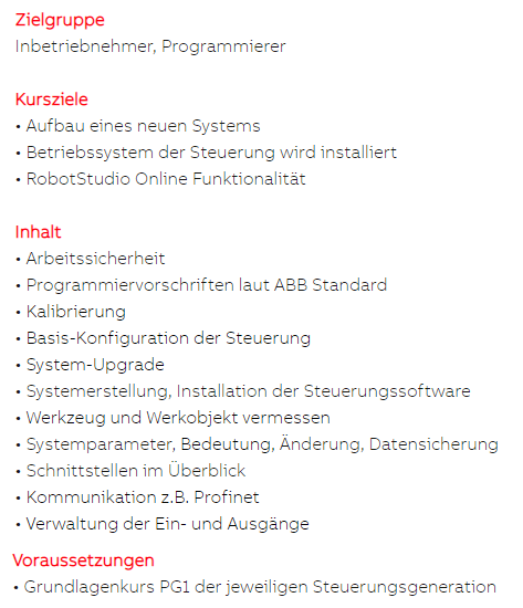 | Kurs | IRC5 Basis-Inbetriebnahme |