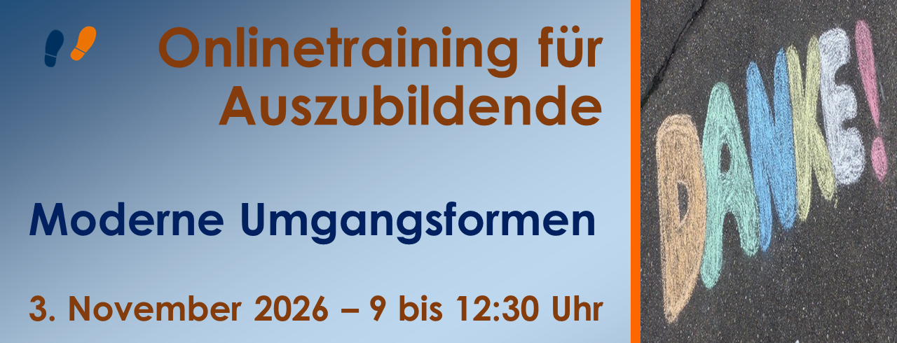 | 2 | 03.11.2026 | 09:00 – 12:30 | Sabine Bleumortier | online | Azubitraining Moderne Umgangsformen |
