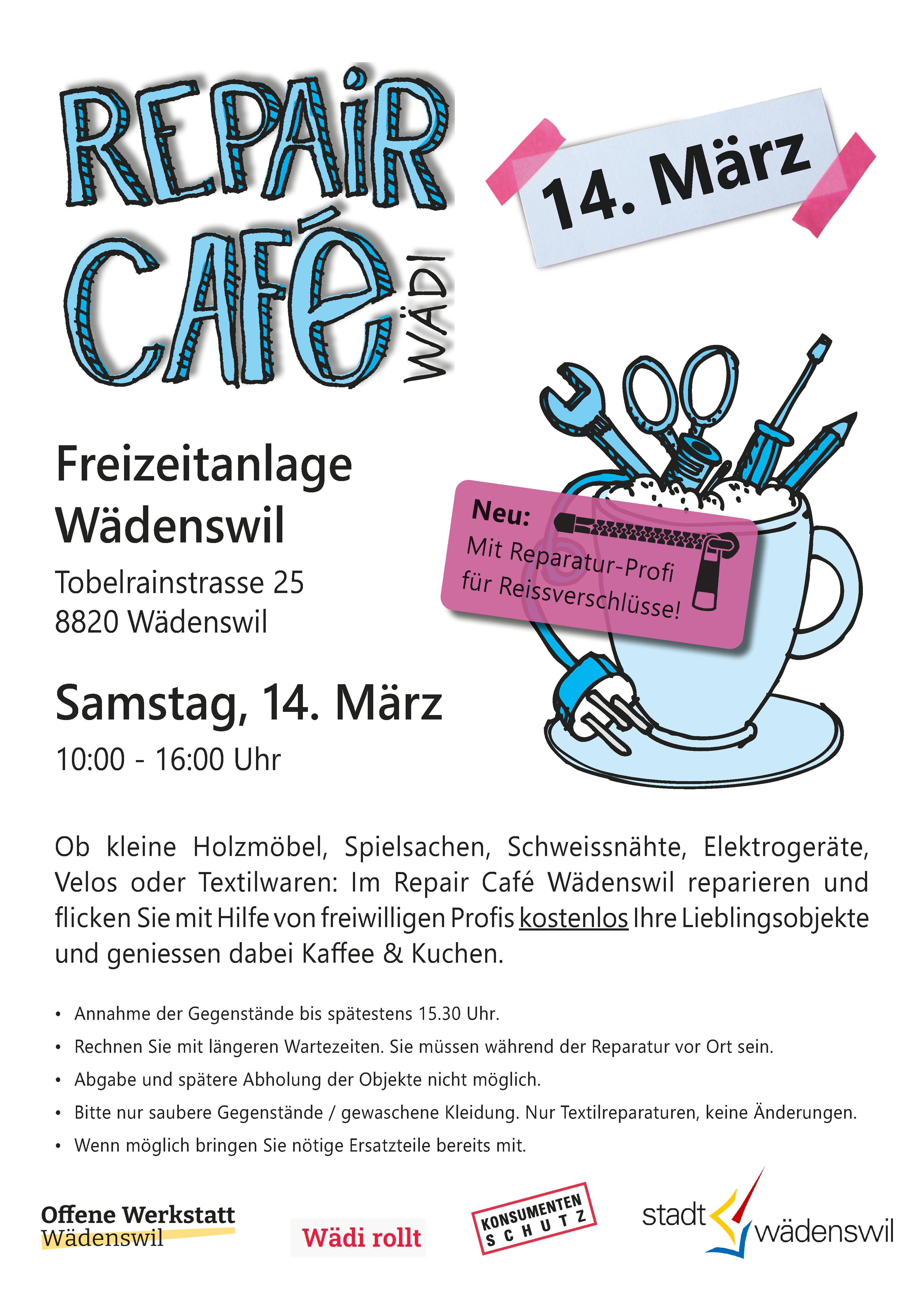 | Event | Repair Café, Samstag, 14. März 2026, 10.00 - 16.00 Uhr (ohne Anmeldung) |
