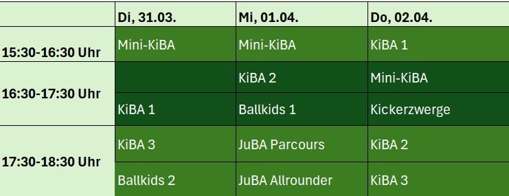 In der ersten Osterferienwoche bieten wir von 31.03.-02.04. unsere KiBA- und JuBA-Stunden an