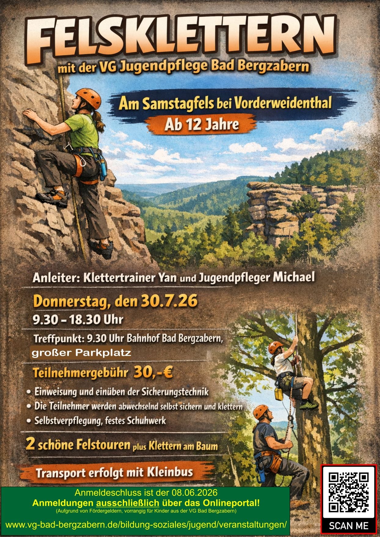 1 30.07.2026 09:30 – 18:30 Herr Michael Gerbes Bad Bergzabern Klettern am Feld