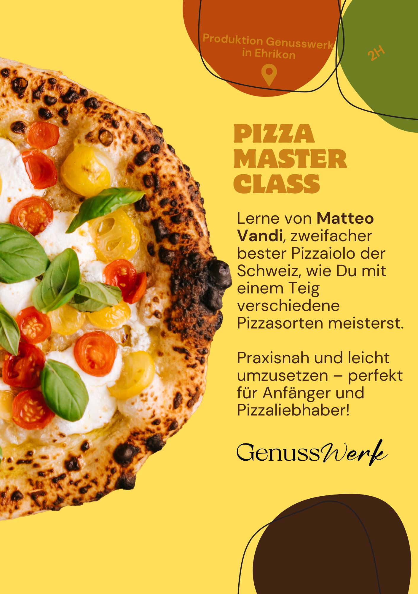 | 1 | 20.04.2026 – 20.04.2026 | 20.04.2026 | 10:30 – 13:00 | Genusswerk Turbenthal | Produktion Genusswerk Ehrikon | Pizzamasterklass mit Matteo |