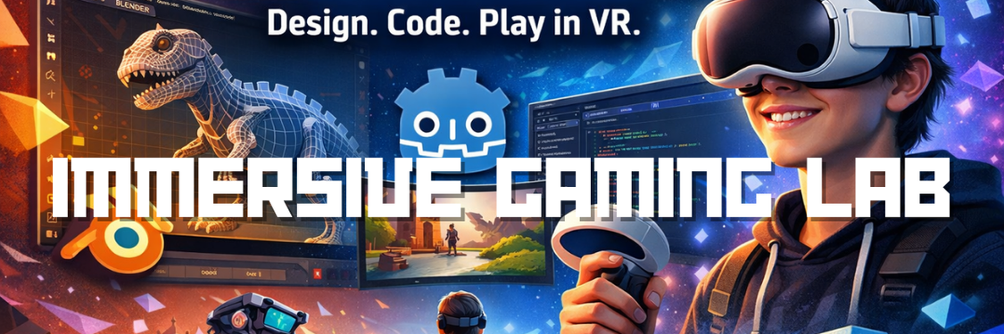 Design it. Code it. Step inside it.In our all new Immersive Gaming Lab, students design and build their own interactive VR games from the ground up. Campers create custom 3D assets using Blender, import them into the Godot game engine, and code gameplay mechanics and interactions. The experience comes full circle as students test and play their games in virtual reality using Meta Quest 3 headsets—stepping directly into the worlds they created.